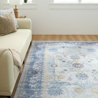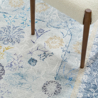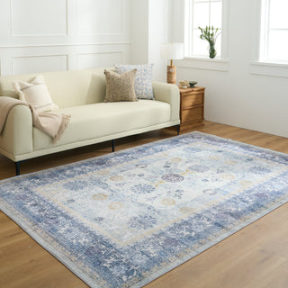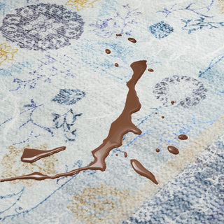 Tappeto lavabile facile da pulire, tradizionale, con bordo floreale blu calmo, resistente, anti-rovesciamento, adatto agli animali domestici, antiscivolo, per il soggiorno