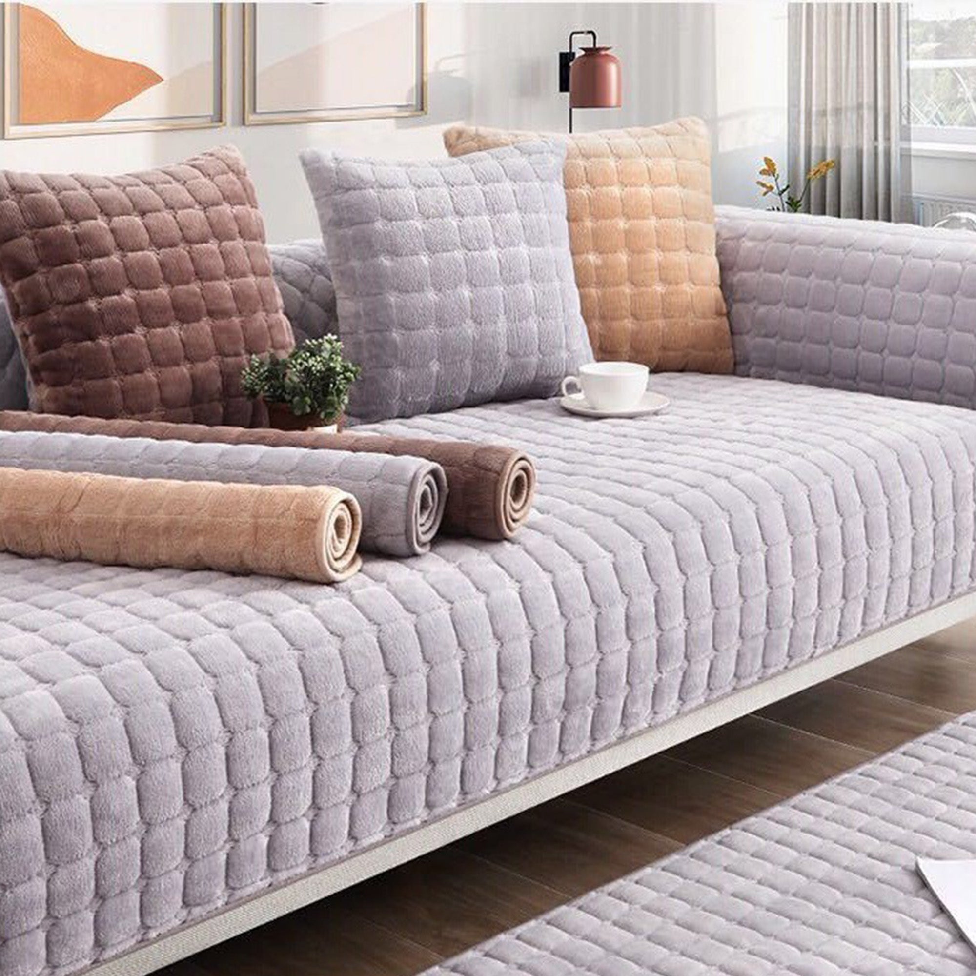 Ti presentiamo il nostro copridivano Biscuit Bliss: il massimo del piacere per il tuo spazio abitativo! Realizzato in lussuoso tessuto felpato, offre una morbidezza senza paragoni, avvolgendoti in puro comfort e lusso. Con il suo design caldo e spesso, è come rannicchiarsi con la tua coperta preferita tutto il giorno. Inoltre, puoi dire addio ai problemi legati alla muta: il nostro materiale accuratamente selezionato garantisce uno spazio pulito e ordinato.