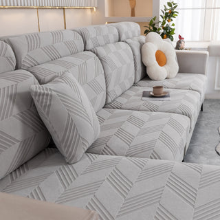 Proteggi il tuo divano con comfort e stile con la nostra nuovissima fodera per divano elasticizzata ChevronEase Jacquard, progettata con maestria artigianale e pensata per la vita reale. Che i tuoi animali domestici saltino, si rilassino o graffino, questa fodera a copertura totale offre una protezione impeccabile con un'estetica raffinata.