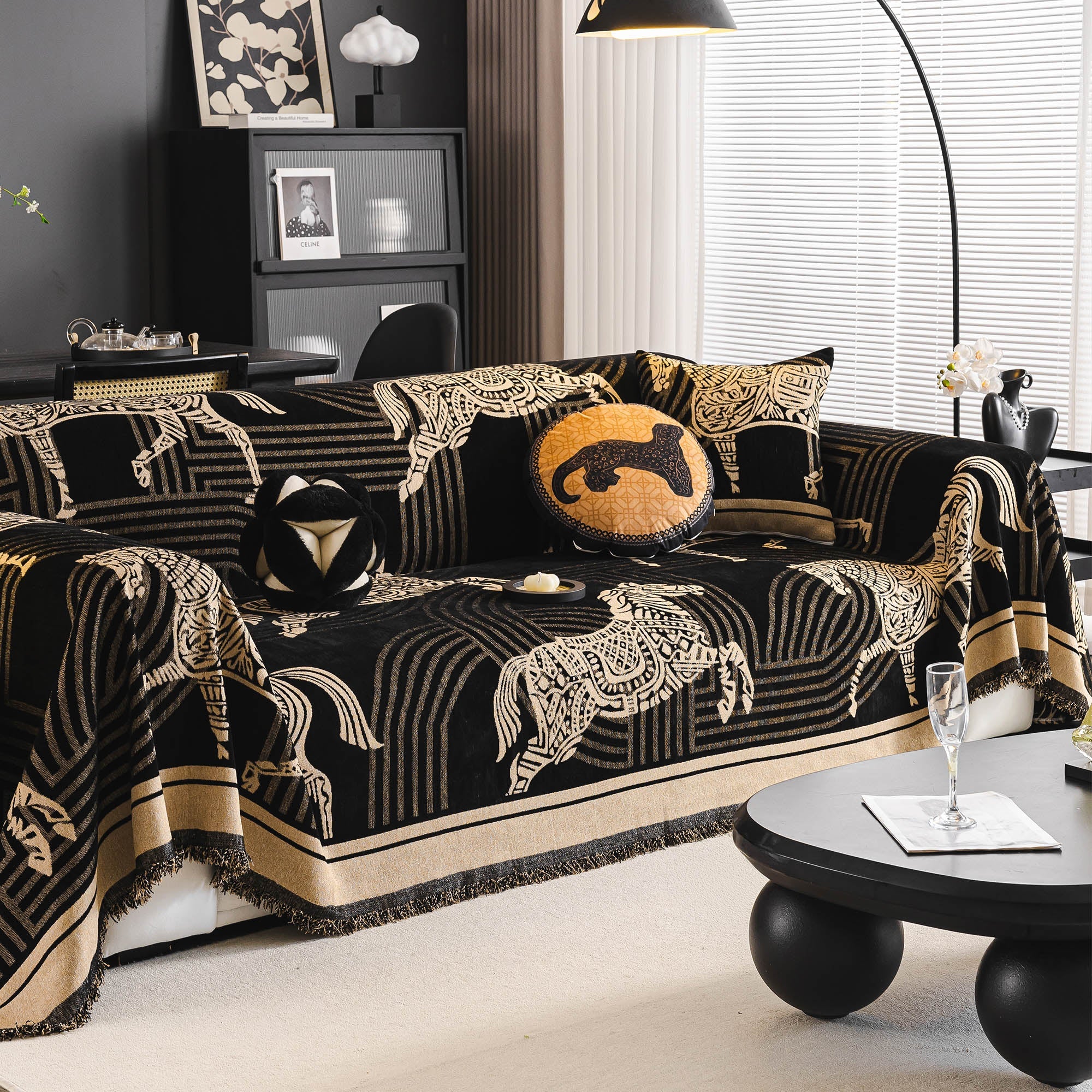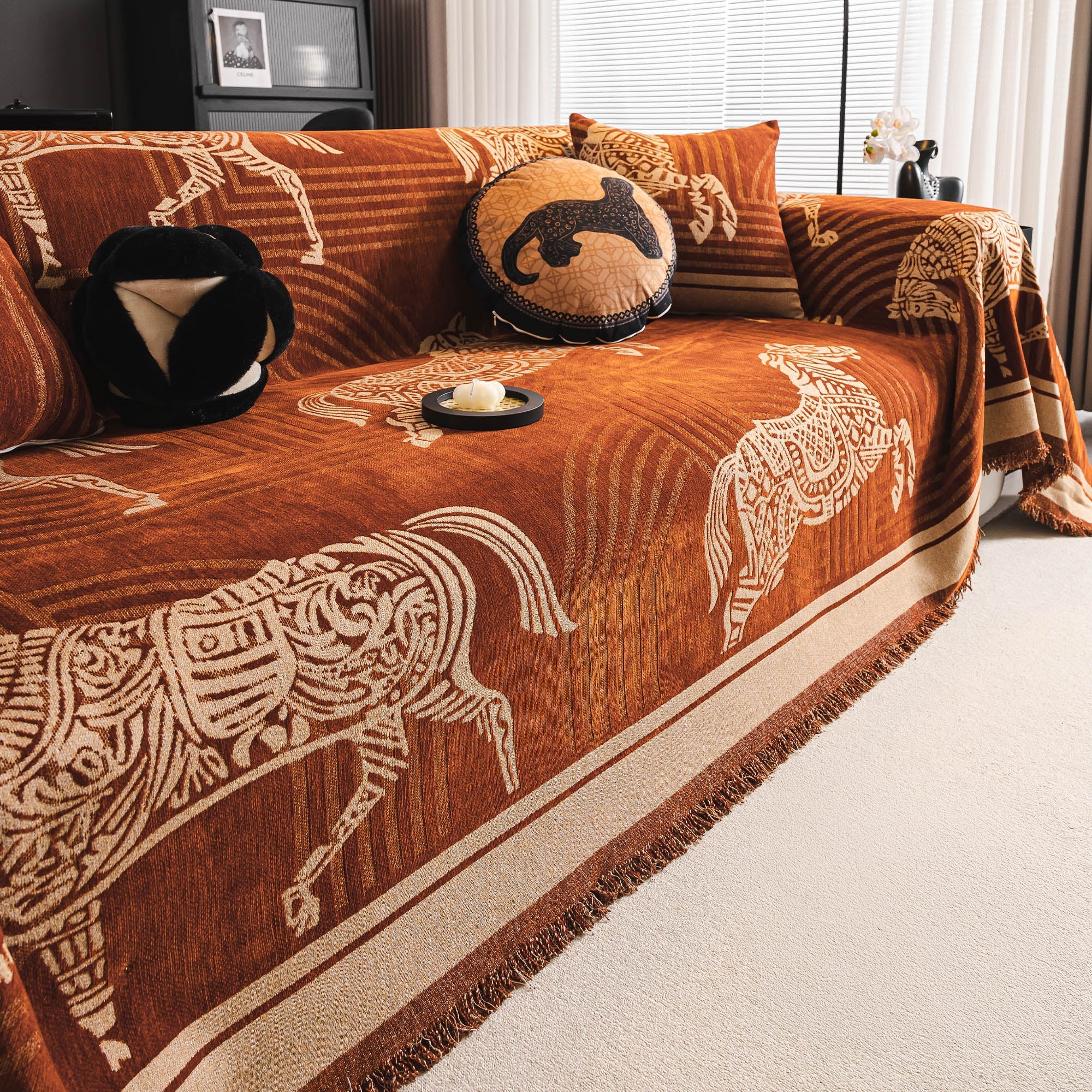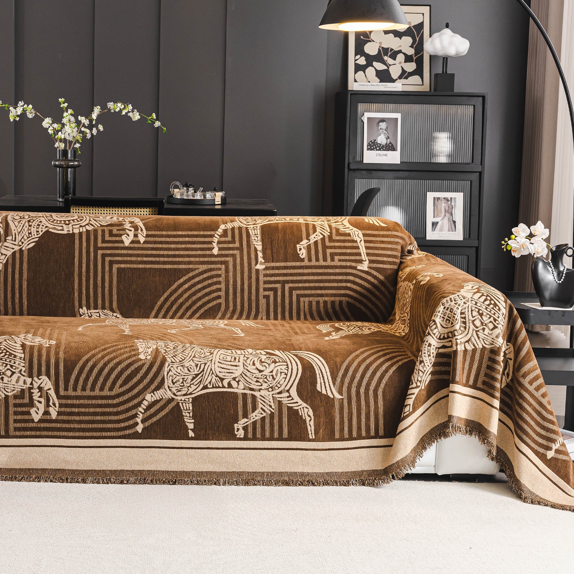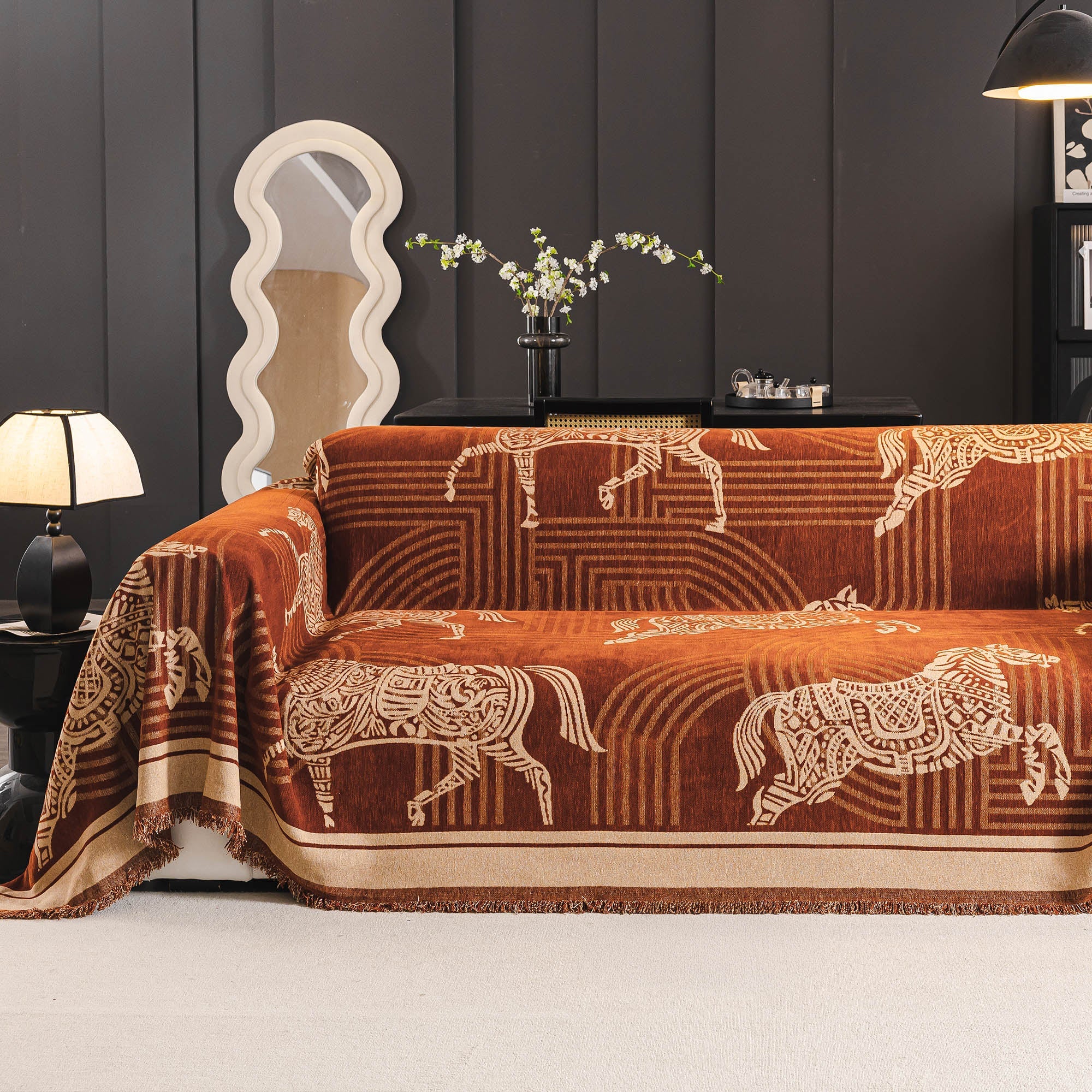 Copridivano in ciniglia traspirante con motivo a cavallo chic, protezione morbida ed elegante per un'accogliente casa moderna e senza problemi