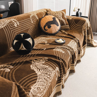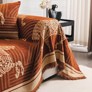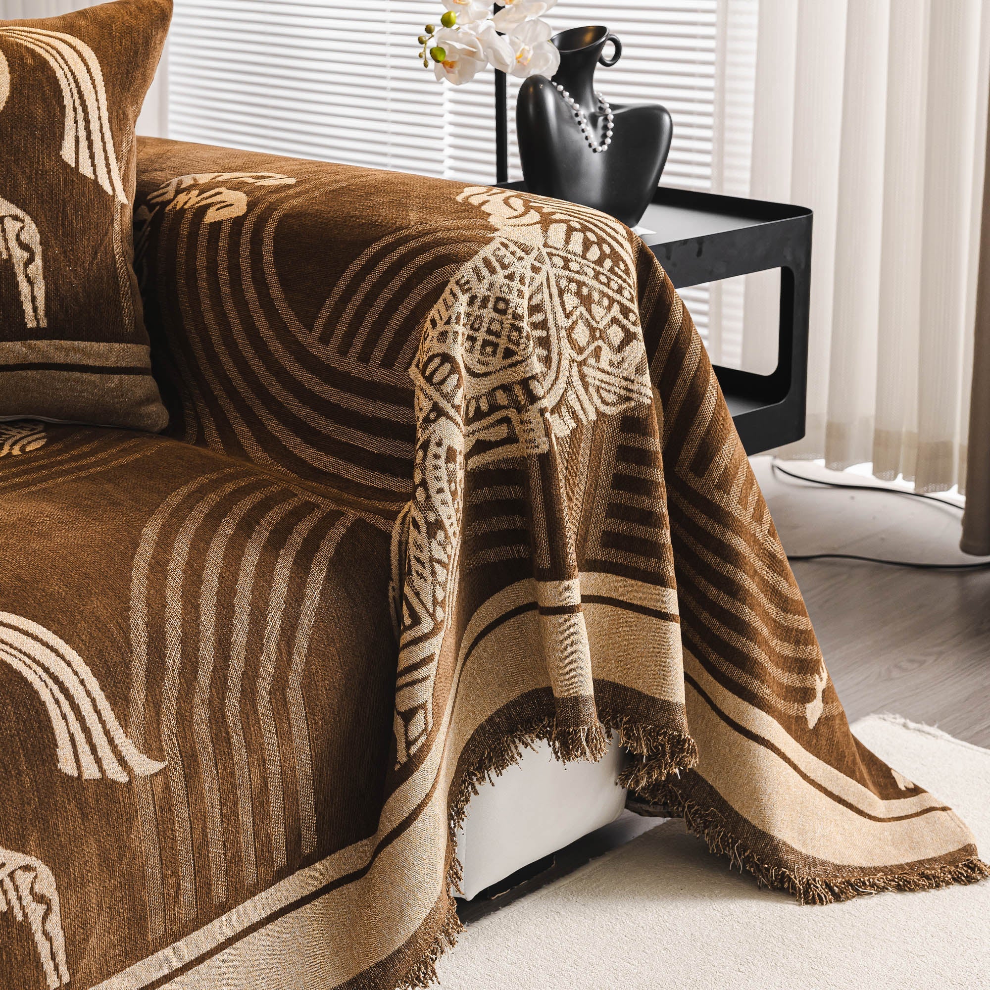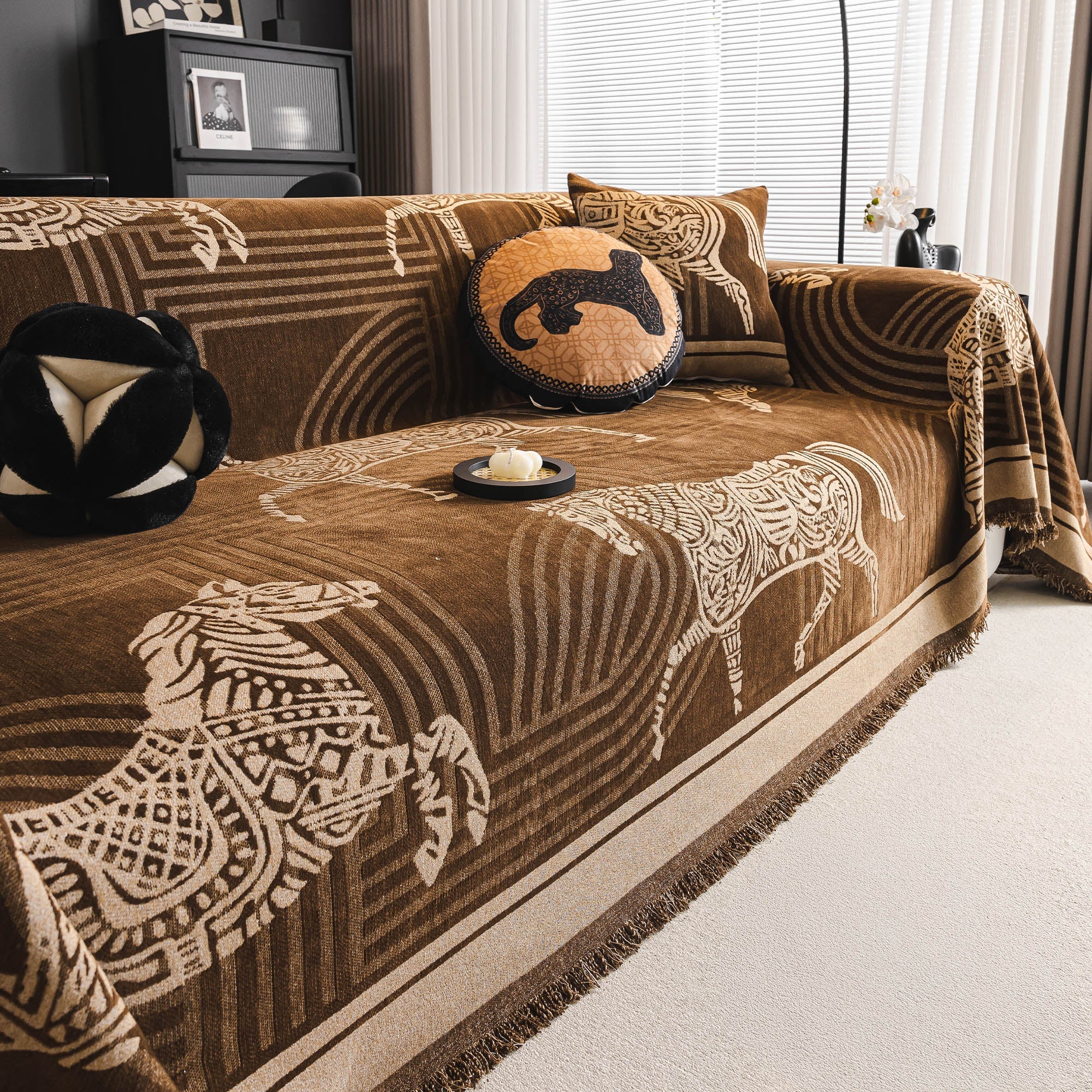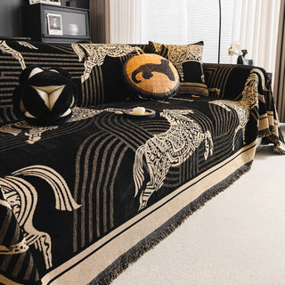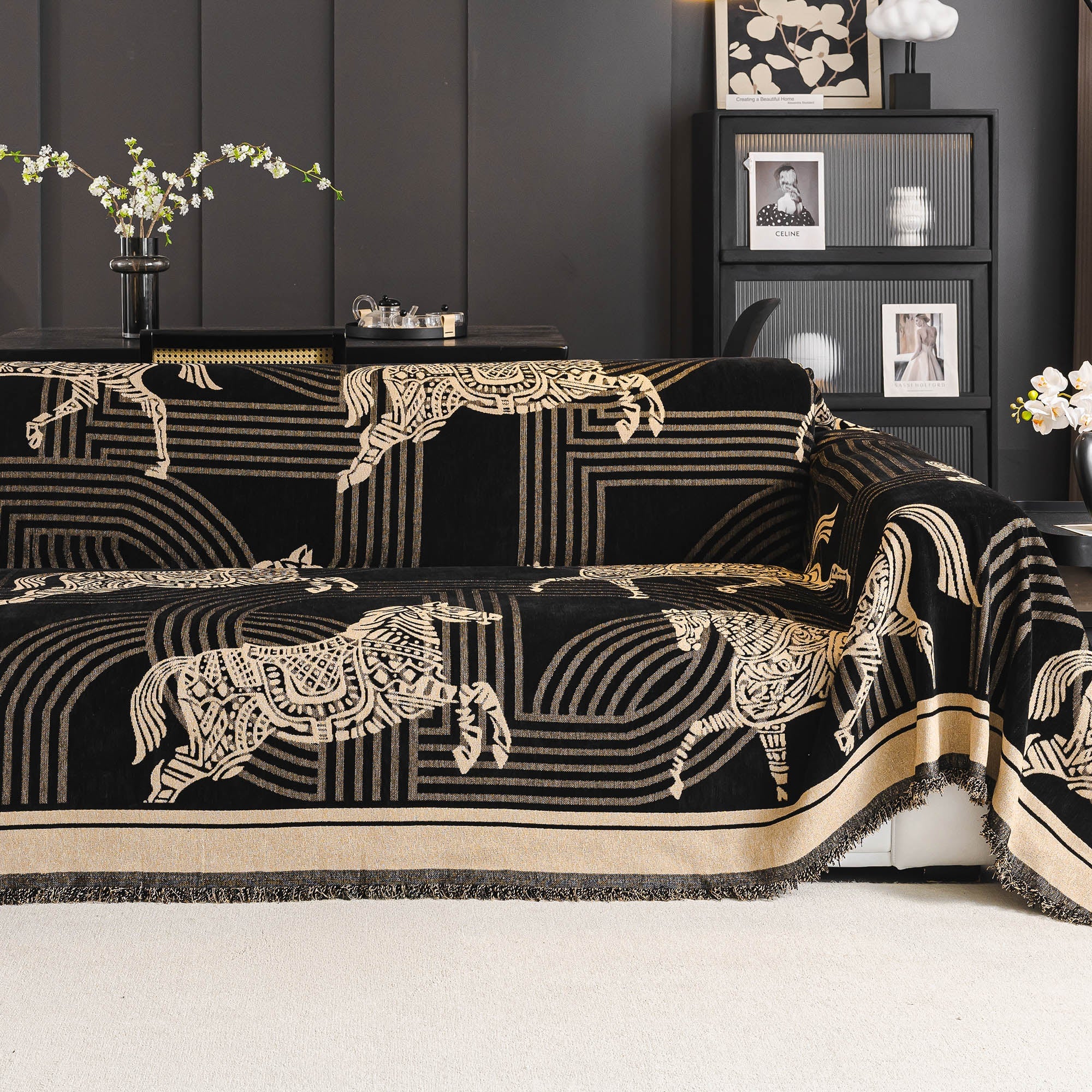 Copridivano in ciniglia traspirante con motivo a cavallo chic, protezione morbida ed elegante per un'accogliente casa moderna e senza problemi