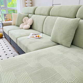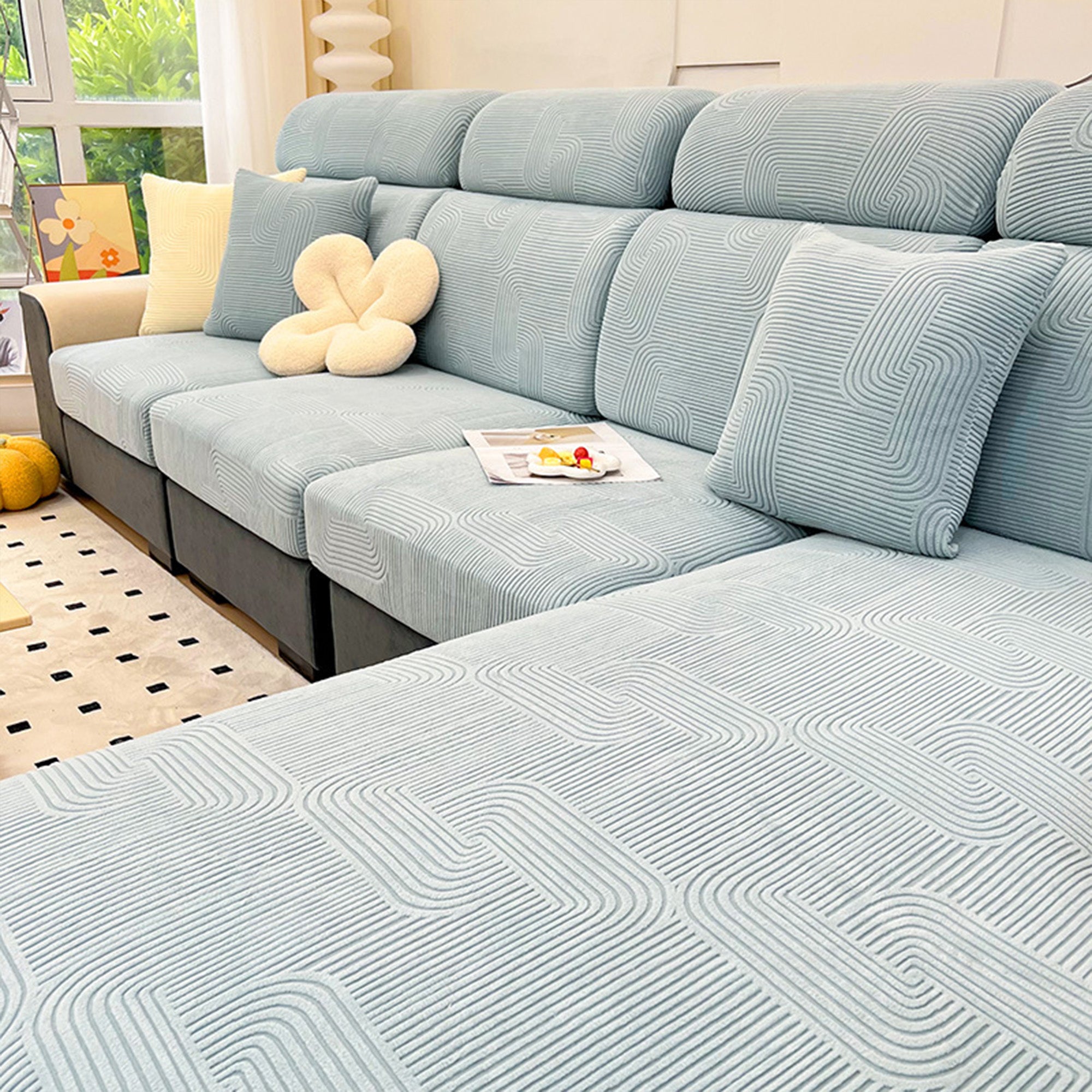 Elegante copridivano elasticizzato in jacquard lineare – Protezione antiscivolo e avvolgente