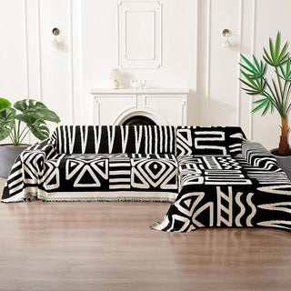 Copridivano / Copertura reversibile comoda a motivo geometrico nero - Vendita finale