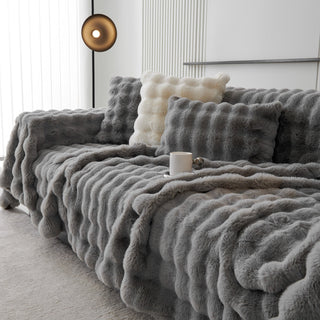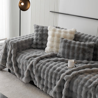 Migliora il tuo spazio abitativo con il copridivano Luxe Ripple Faux Fur. Questa fodera in peluche presenta un esclusivo design ondulato in pelliccia sintetica color crema, che dona consistenza e raffinatezza alla tua casa. Il materiale ultra morbido non solo migliora il comfort, ma aggiunge anche un tocco di eleganza, perfetto per avvolgere il divano in uno stile lussuoso.