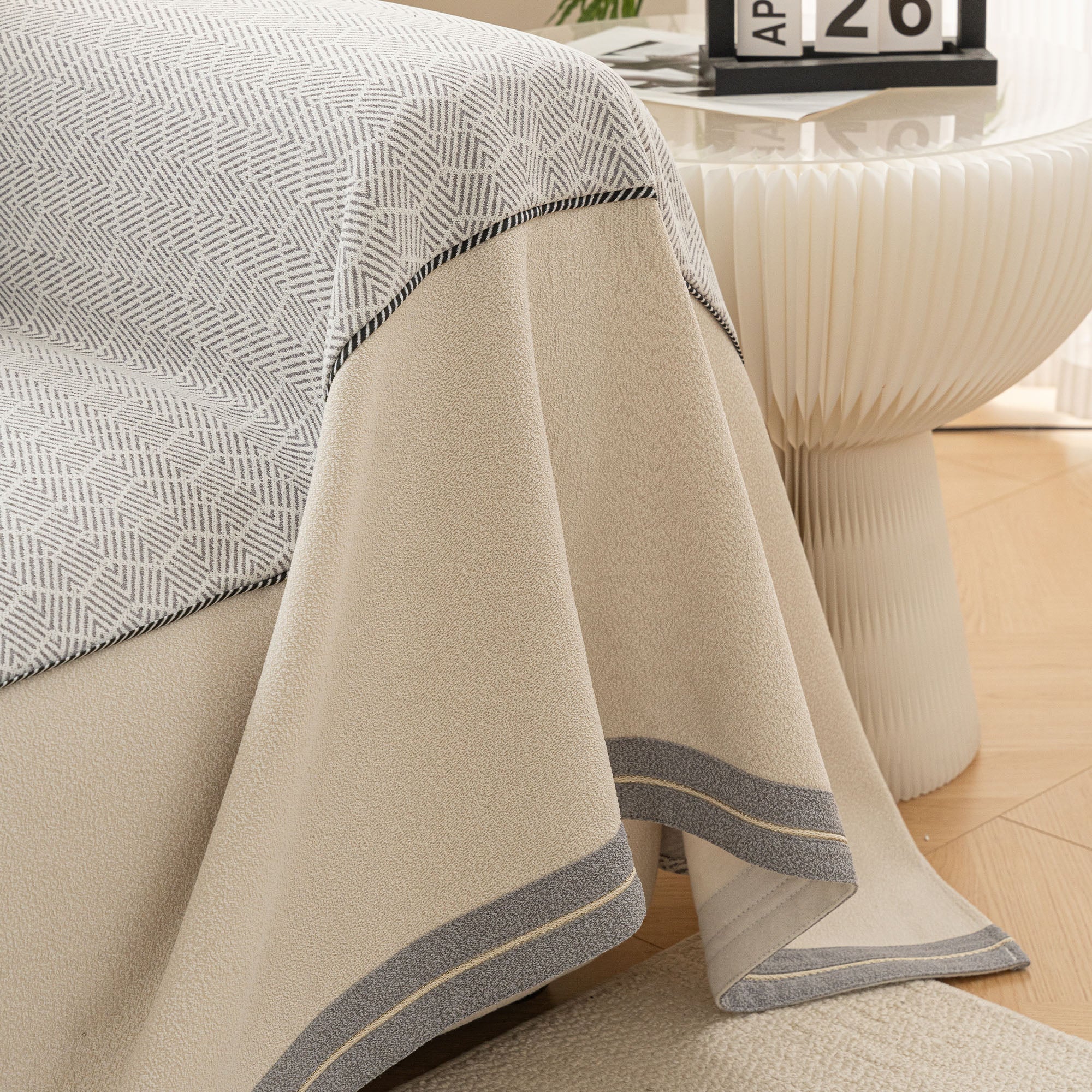 Esalta l'arredamento della tua casa con la nostra raffinata fodera per divano in ciniglia a spina di pesce, antigraffio. Caratterizzata da un sofisticato motivo a spina di pesce con sottili bordi a contrasto, questa fodera unisce perfettamente stile e funzionalità. Realizzata in pregiato tessuto in ciniglia, adatto agli animali domestici, offre comfort e resistenza superiori, proteggendo efficacemente il divano dall'usura quotidiana, dai peli degli animali domestici e dai graffi.