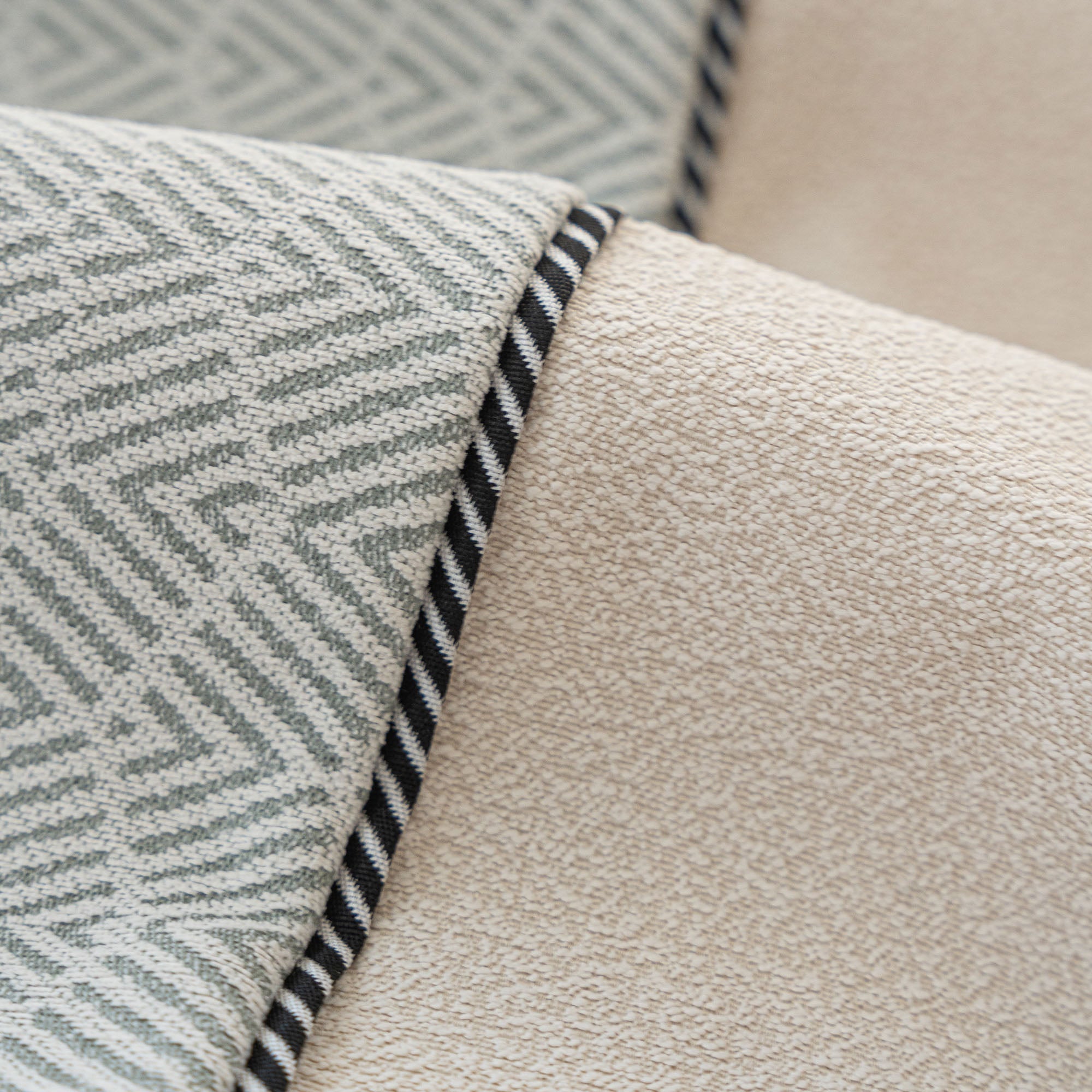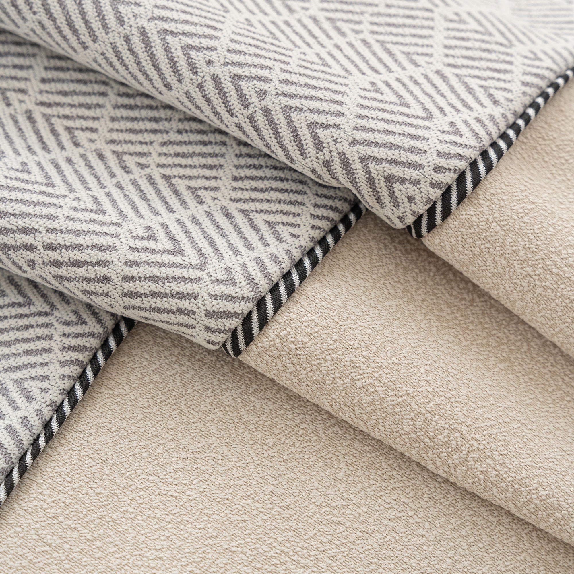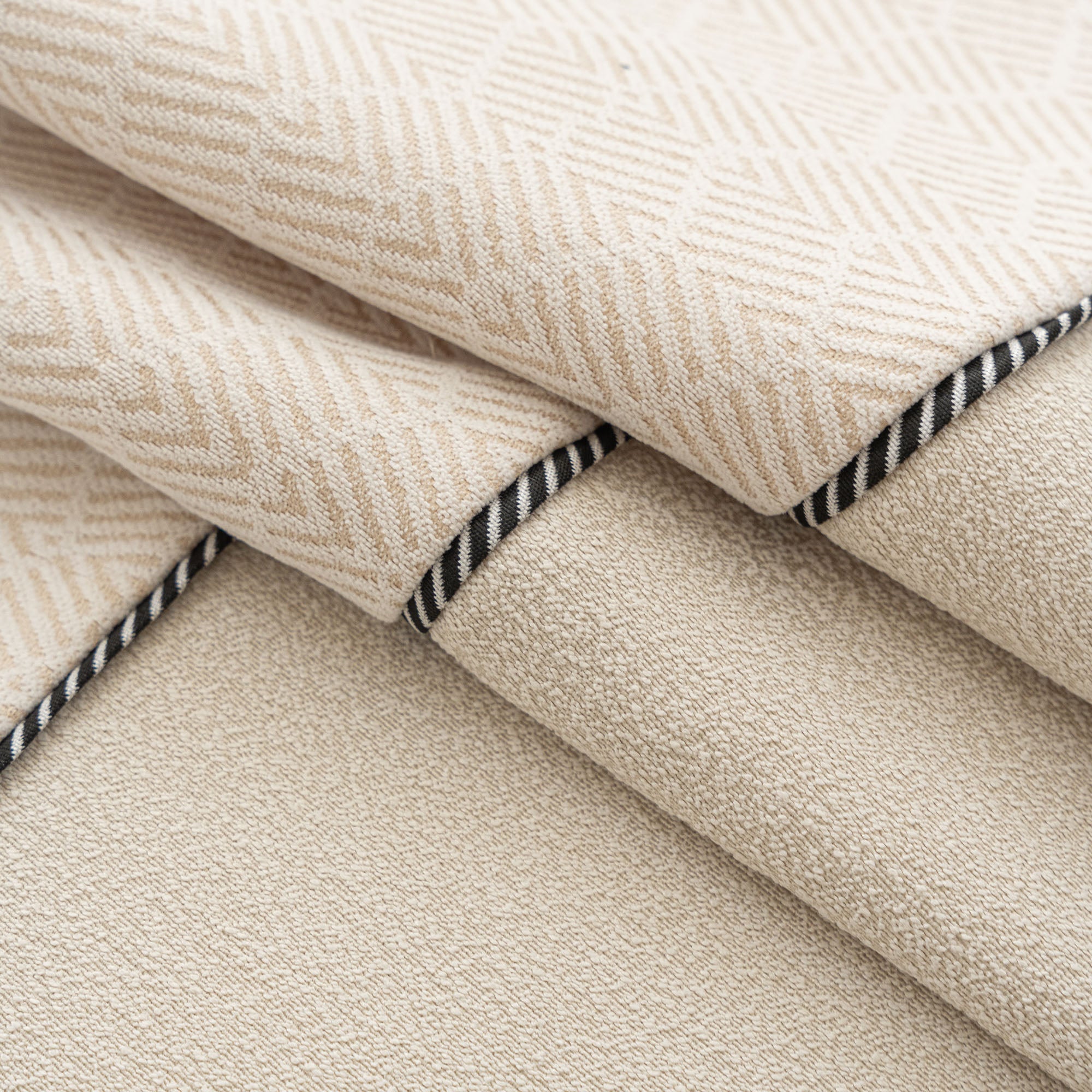 •Elegante trama a spina di pesce con raffinati bordi a contrasto.