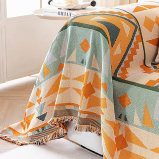Copridivano in ciniglia con motivo tribale al tramonto, protezione morbida, traspirante ed elegante per un miglioramento della casa facile da pulire.
