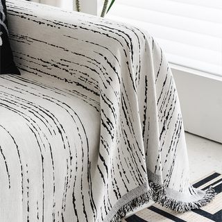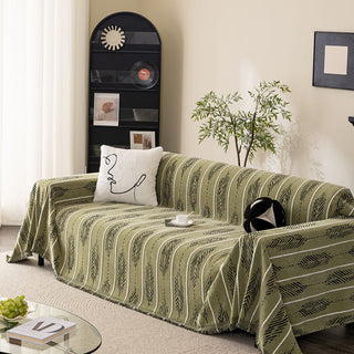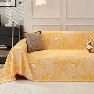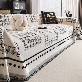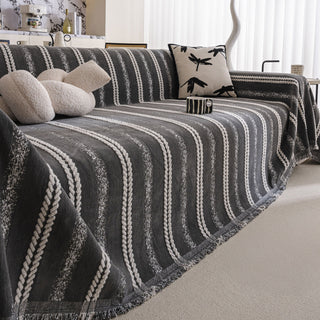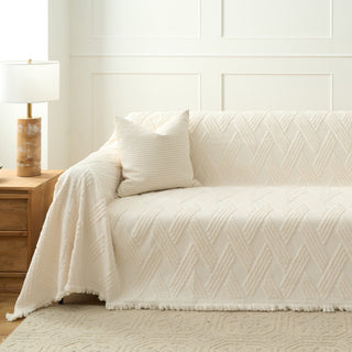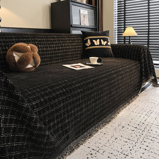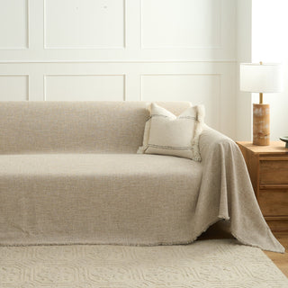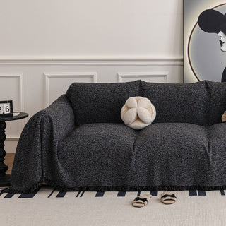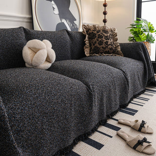 Copridivano in ciniglia multiuso monocromatico boho chic con frange, protezione morbida per un divano in casa senza problemi