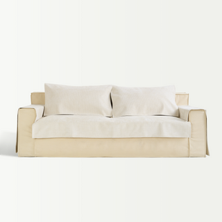 Copridivano elasticizzato per tutte le stagioni in velluto color latte, avvolgente e antiscivolo