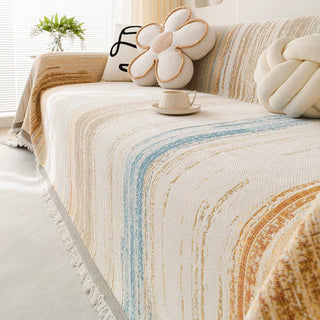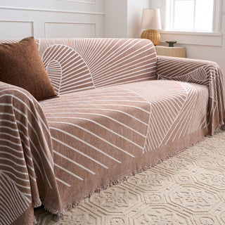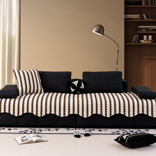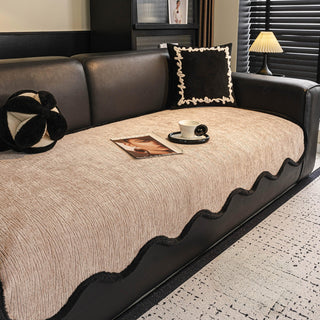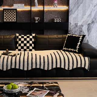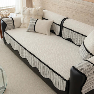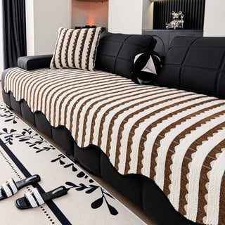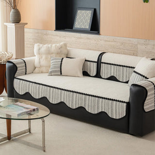 Fodera per divano antiscivolo in ciniglia con motivo a onde di metà secolo