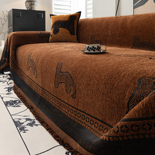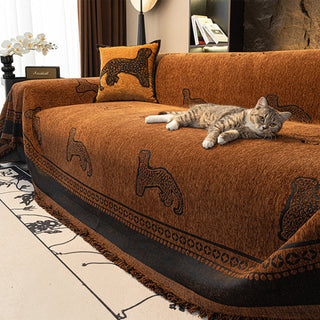 Copridivano in ciniglia con motivo leopardato – antigraffio e lavabile