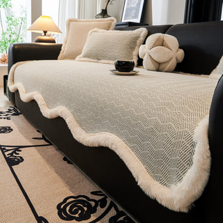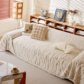Copridivano antiscivolo in pelliccia sintetica di coniglio Cloud Plush Wave