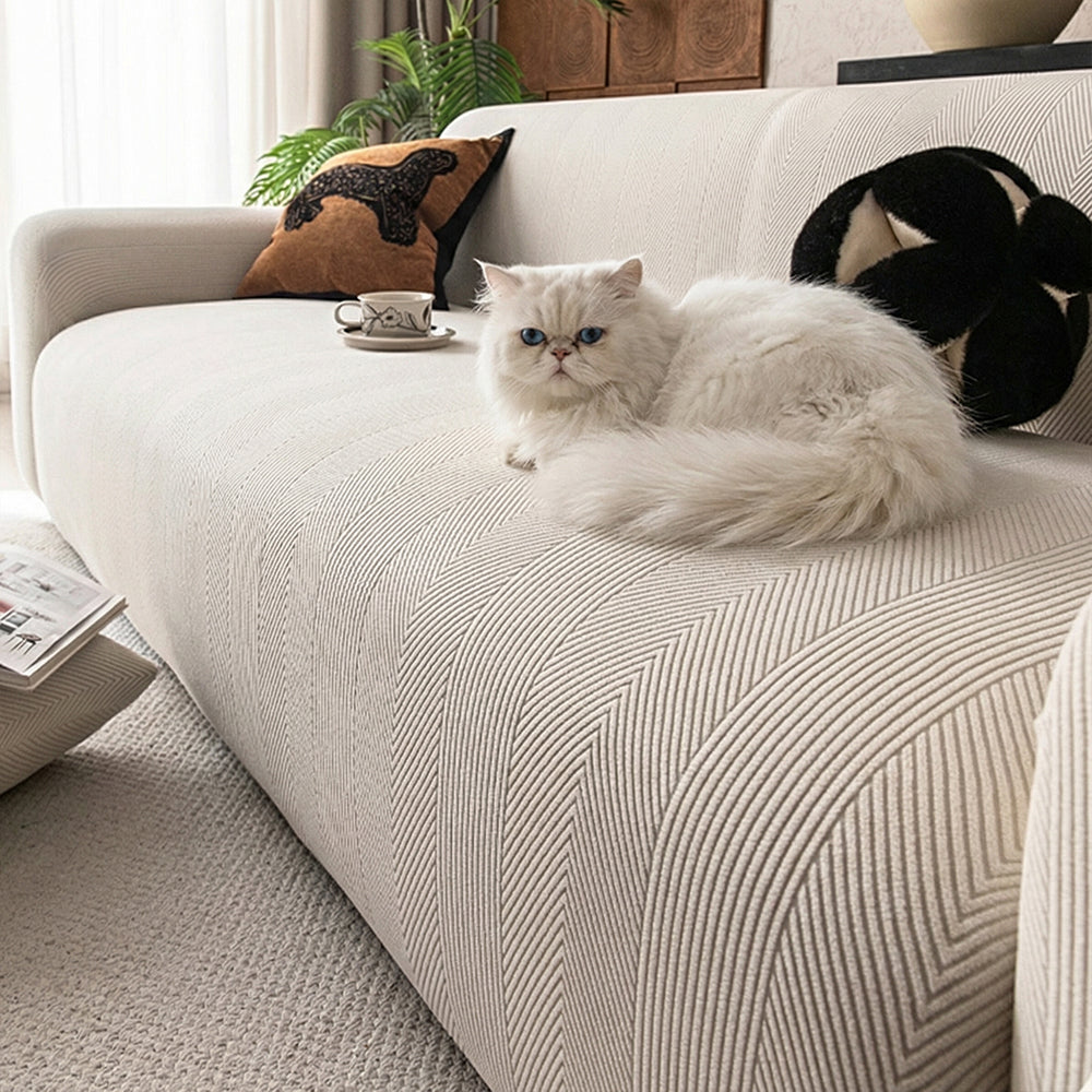 Rinnova il tuo spazio abitativo con la fodera impermeabile per divano AquaFlex GeoStretch, progettata per le case moderne che richiedono stile e protezione. Realizzata in tessuto altamente elastico e impermeabile e con una raffinata texture geometrica, questa fodera a copertura totale offre un aspetto pulito e su misura, proteggendo al contempo il divano da schizzi, macchie, polvere e unghie di animali domestici.