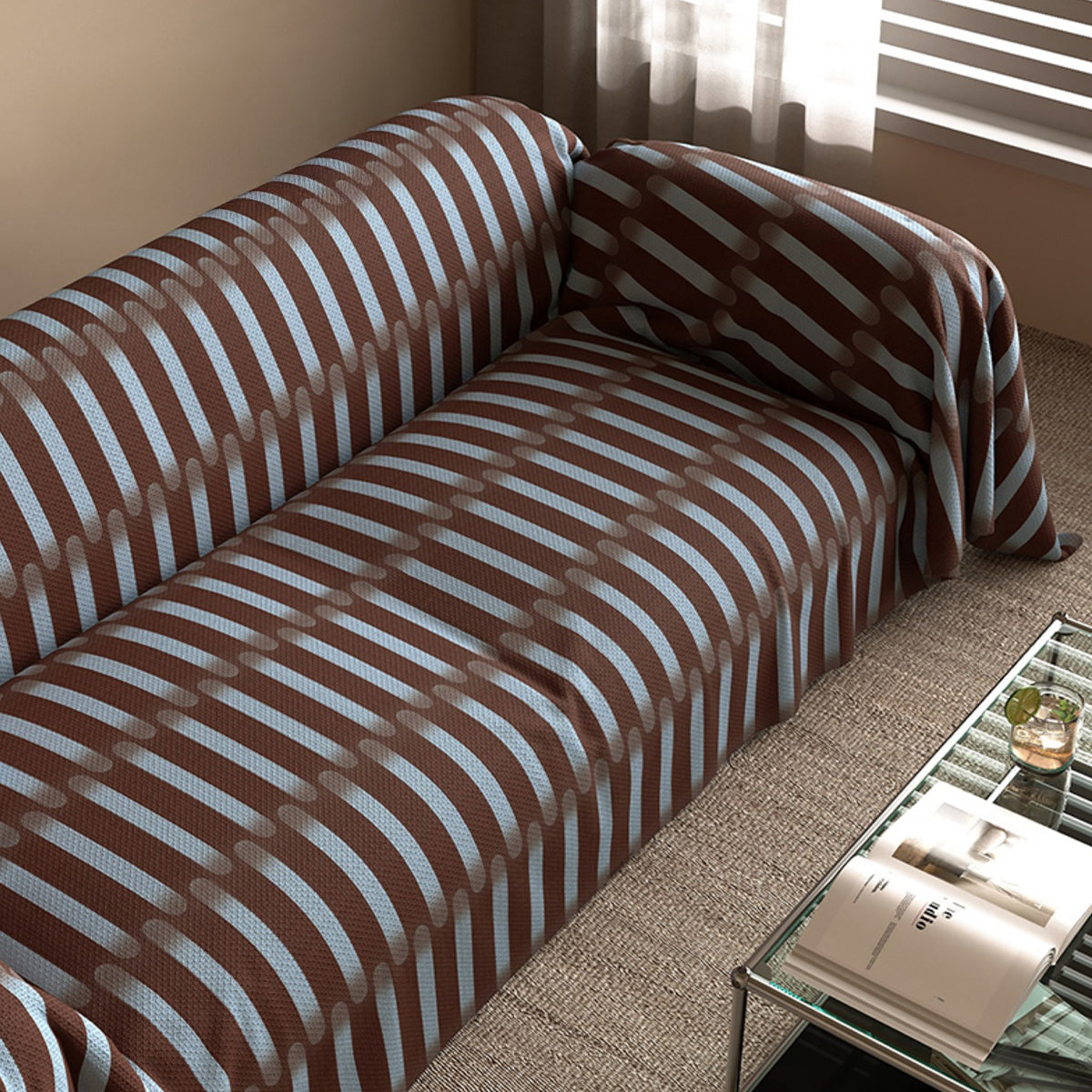 Porta l'audace energia della metà del secolo nel tuo spazio abitativo con il nostro copridivano antigraffio Retro Ribs in look lino. Il tessuto traspirante in finto lino presenta nervature verticali ritmiche in tonalità contrastanti, che aggiungono profondità e un'atmosfera giocosa e moderna, proteggendo al contempo il divano dall'usura quotidiana, dalla pelliccia di animali domestici e dai graffi. Morbido ma robusto, rinfresca il tuo arredamento e resiste alla vita di tutti i giorni.